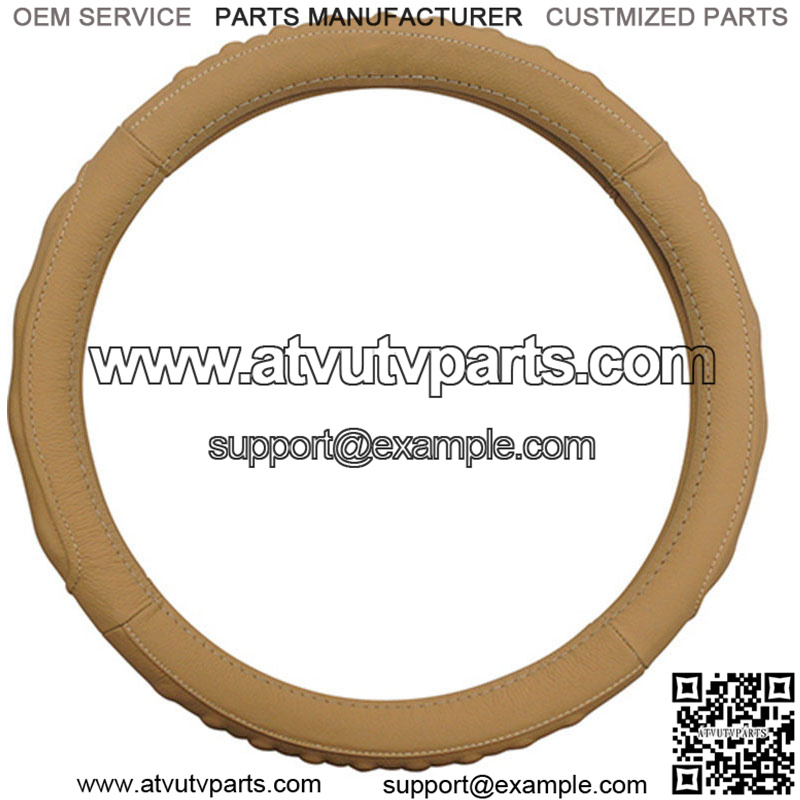 Golf Steer Leather Steering Wheel Cover. Fits 01+, Club Car 11+ and Star. Size: 13.25″-13.60″. Color: Beige. High quality, durable genuine leather construction. Elegant styling while protecting clothes from steering wheel rub. Provides relief and comfort for arthritic hands.