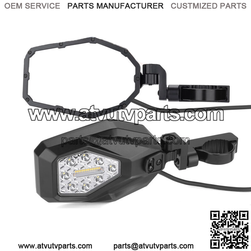 Kemimoto UTV LED lighted side mirrors not only provide 2 additional night vision spotlight, but also offer 2 amber flowing turn signal lights that make the driver safer when racing. Greatly enhance night vision and night driving ability, while the dazzling lights can make you stand out in the crowd.