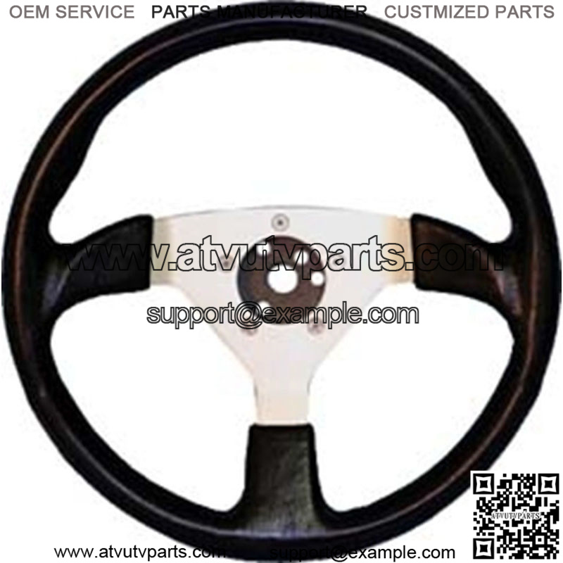 1 13.5″ golf cart steering wheel 3 Silver anodized spokes with black grip with Uses model specific adapter (sold separately) Center cap included