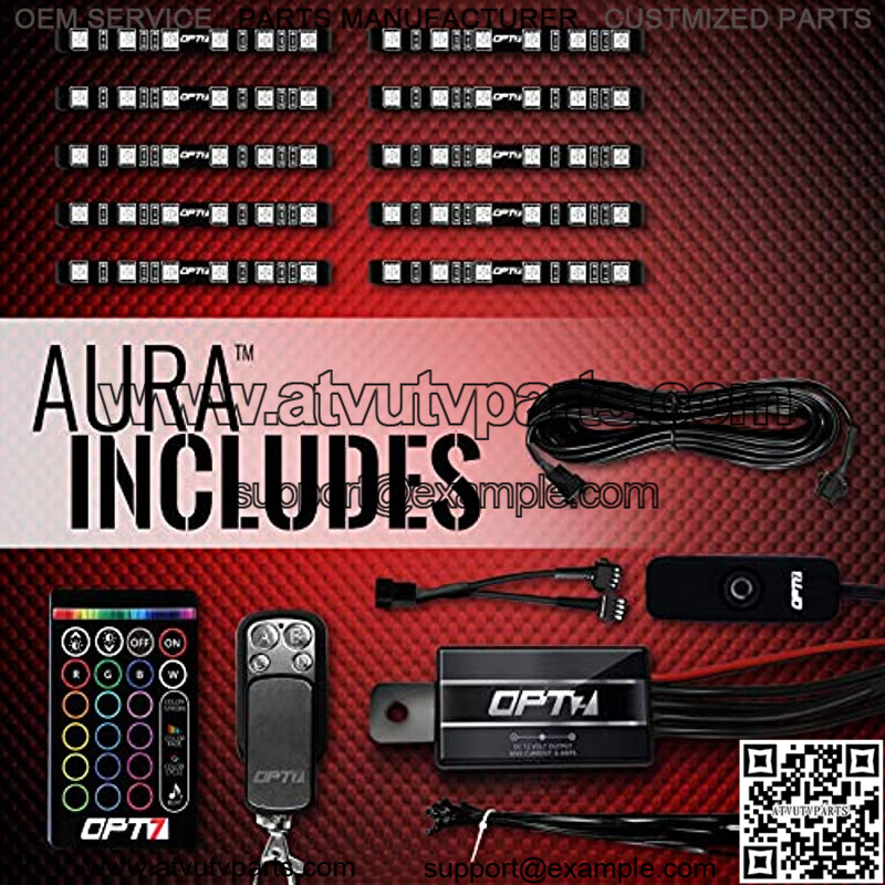 1 x Hand Held Remote1 x 4 Keychain Remote1 x Small screw driver1 x ON/OFF Power Adapter Wire1 x Aura V1 Control Box10 x 5″ Single Row LED Strips5 x Y Splitters2 x 48″ Extension Wires4 x 8″ Chord (Extension Wires)