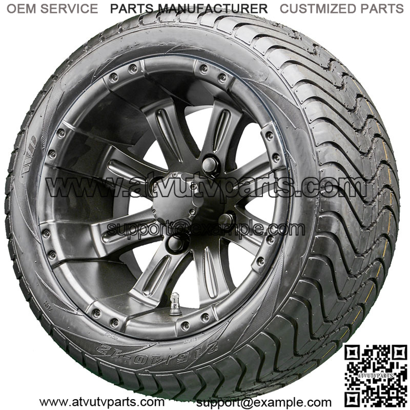 12” RX184 Black Wheels on your choice of Street Low Profile Tires Details: Set of 4 mounted golf cart tire and wheel assemblies 16 Black Lug Nuts 4 Center Caps Machined RX184 Wheels 12×7 with 4×4 bolt pattern and ET-25 offset This combo will NOT require a lifted cart Tire Options: TIR-345 215/40-12 DOT 4 Ply TIR-372 215/35-12 DOT 4 Ply [$15] TIR-344 215/50-12 DOT 4 Ply [$30] TIR-342 225/55-B12 DOT 4 Ply [$75] 215/35-12 = 17.9″ Tall – 8.5″ Wide (fits all models) 215/40-12 = 18.5″ Tall – 8.5″ Wide (fits all models) 215/50-12 = 20.5″ Tall – 8.5″ Wide (fits RXV/TXT/Yamaha Drive without a lift) 215/55-B12 = 21″ Tall – 9.0″ Wide (fits RXV/Yamaha Drive without a lift) *Please select Standard (and Club Car) or Metric (Yamaha) Lug Nuts*
