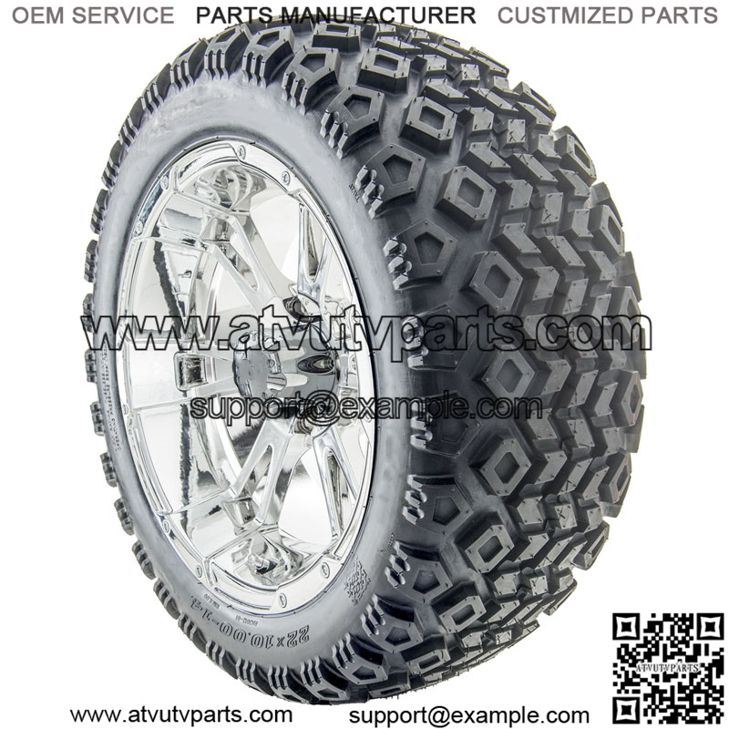 RX342, Chrome w/ Center Cap, 14×7 ET-25 Details: Price is for a set of 4 mounted golf cart tires and wheel assemblies 16 Chrome Lug Nuts 4 Center Caps Chrome RX342 Wheels 14×7 with 4×4 bolt pattern with ET-25 offset (THIS COMBINATION IS FOR LIFTED CARTS ONLY 22″ Tires are recommended with 5″ lift kit or larger. 23″ Tires are recommended with 6″ or larger lift kit. TIRE Options: Please choose from the list below. **Please select Standard (and Club Car) or Metric (Yamaha) Lug Nuts**