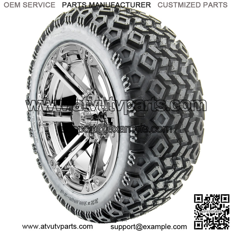 RX352, Chrome w/ Center Cap, 14×7 ET-25 Details: Price is for a set of 4 mounted golf cart tires and wheel assemblies 16 Chrome Lug Nuts 4 Center Caps Chrome RX352 Wheels 14×7 with 4×4 bolt pattern with ET-25 offset (THIS COMBINATION IS FOR LIFTED CARTS ONLY 22″ Tires are recommended with 5″ lift kit or larger. 23″ Tires are recommended with 6″ or larger lift kit. TIRE Options: Please choose from the list below. **Please select Standard (and Club Car) or Metric (Yamaha) Lug Nuts**