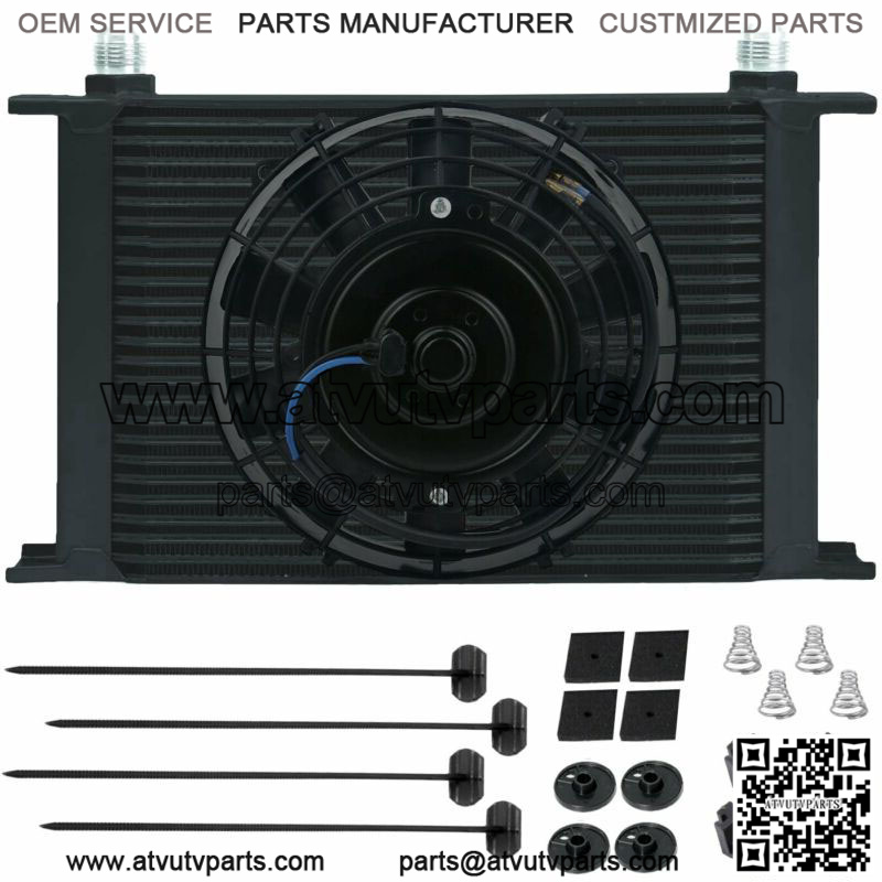25 ROW ALUMINUM ENGINE TRANSMISSION OIL COOLER 6AN HOSE 6 INCH ELECTRIC FAN KIT