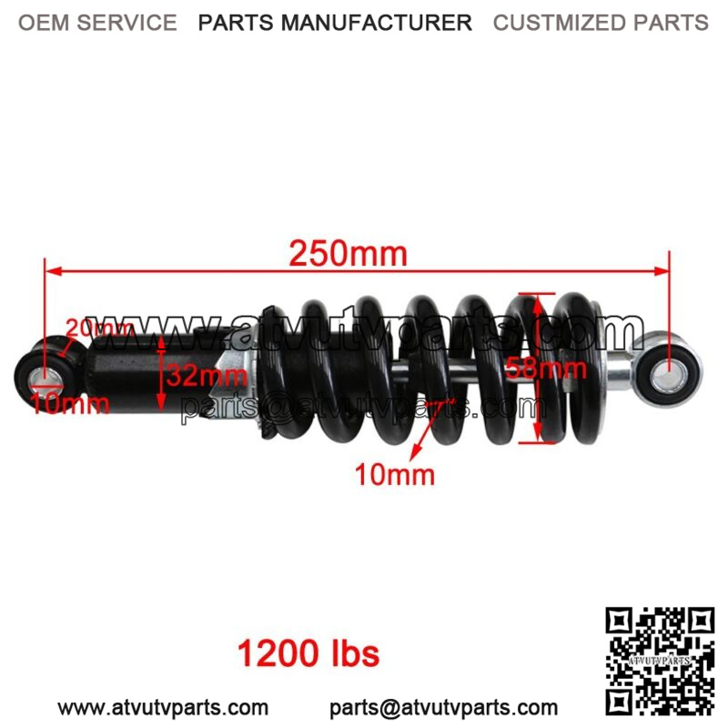2x 250mm 10″ Rear Shock Absorber Suspension Kit Dirt Pit Bike Trail ATV 1200LBS