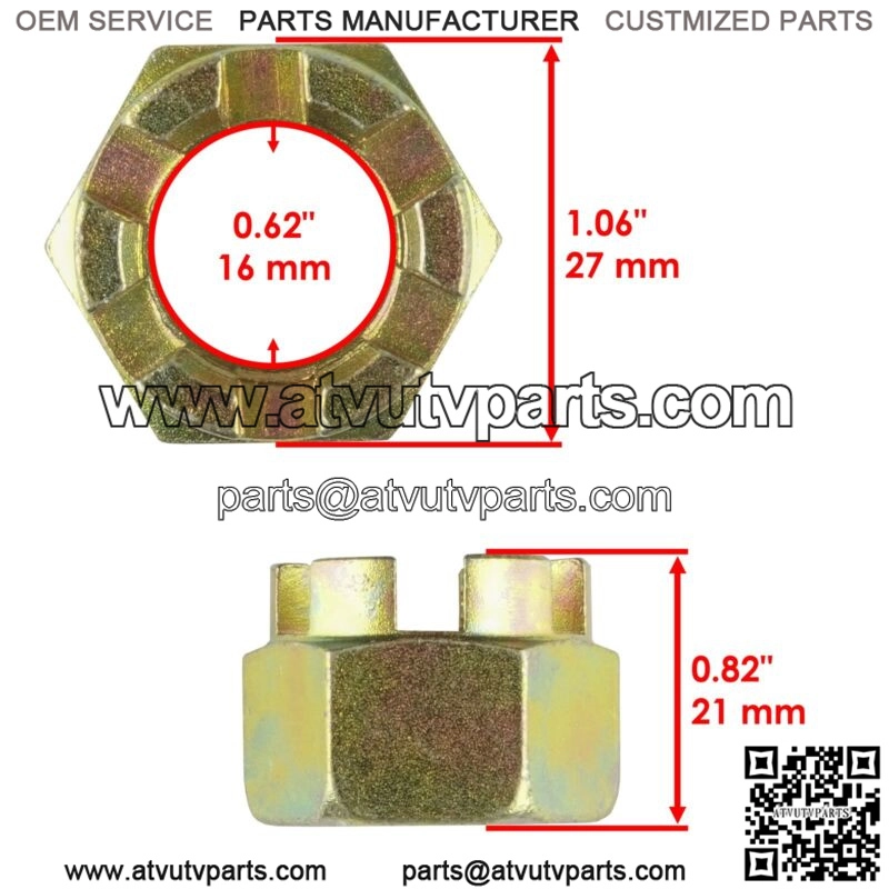 Castle Nut Inner Diameter | 0.62″ | 16mm