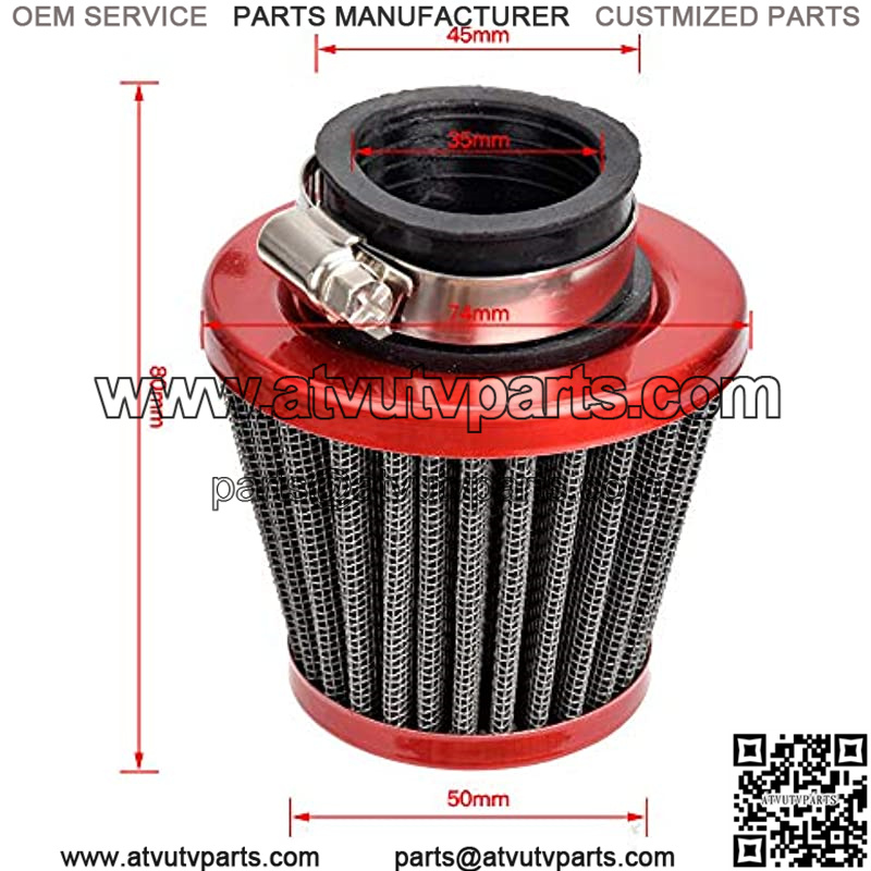 35mm Motorcycle Red Air Filter For 50cc 70cc 90cc 110cc 125cc Coolster Sunl Honda Yamaha Kawasaki Suziki ATV Quad Go Kart Pit Dirt Bike Parts