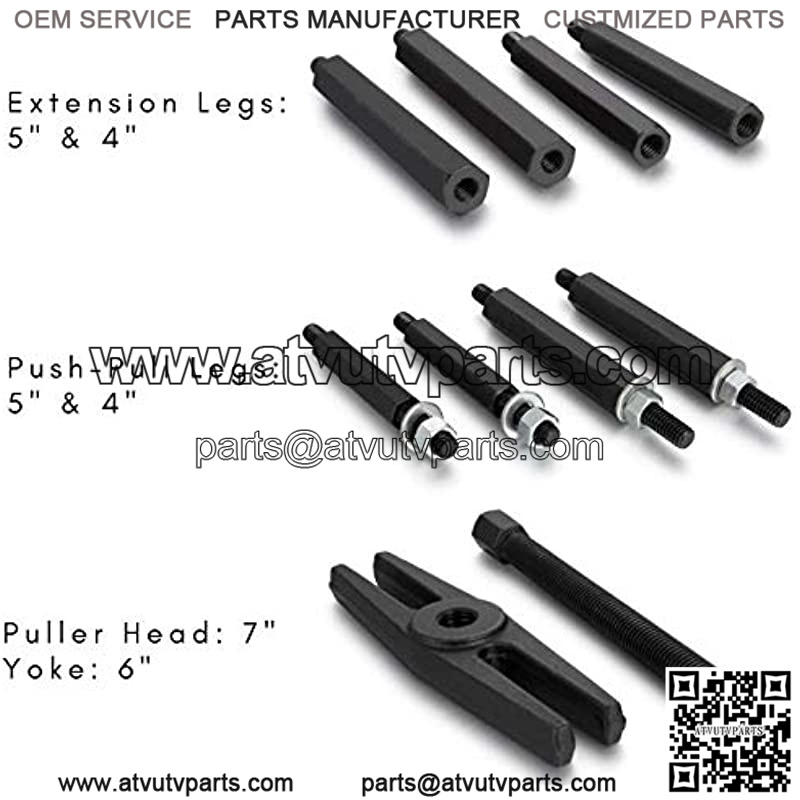 COMPLETE SET: Shanklys bearing separator set comes with four sets of hex push puller legs and a 5 inch bar type puller head with forcing screw, giving the user options to deal with various pulling jobs.