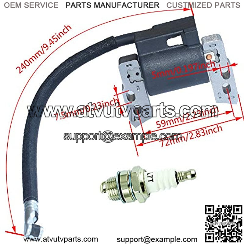 Ignition coil Replaces# Briggs & Stratton:692605,790817,799381,590454,802574.Spark plug replaces#:L7T,BM6A,BPMR7A,RCJ6Y,RCJ7Y,WSR5F.