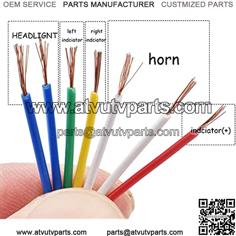 Wire Diagram:2 X White wires = Horn (green button) 2 X Red wires = Head Lightred button 1 X Yellow wire= Left Turn Signal 1 X Green wire = Right Turn Signal 1 X Brown wire= Flash or Ground wire for Turn Signal Lights