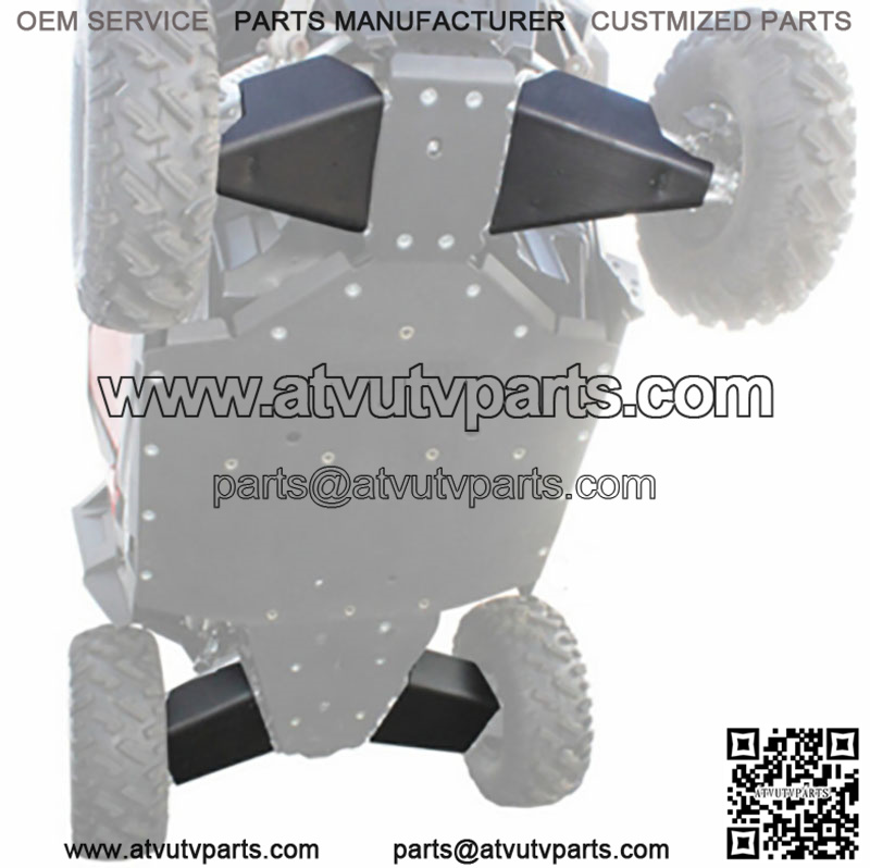 The a-arm guards come in a set of 4 – the front and rear – so your machine has protection for some of the most important suspension components. With these guards on your RZR S 900, you can get back to enjoying riding and lose the worrying. plastic is a ultra high molecular weight plastic that can absorb impact without denting, breaking or gouging like aluminum would. Also, it’s much lighter than aluminum to help keep you machine from getting to heavy with all the additional upgrades you plan on doing to it.