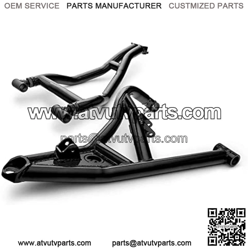 These Atlas Pro A-arms are meaty and live up to their hype. Theyre the biggest A-arms we have ever designed. We took our standard A-arm measurements and increased the tubing by 0.25, giving you a beefy 1.5 diameter tubing with 0.138 thick walls. Whats this mean for your stock A-arms Well, our arms put them to shame by measuring 0.5 bigger. And we give these bad boys a finishing touch by adding our UV-resistant powder coating for added durability and corrosion resistance. With an increased size in tubing, your suspension can withstand the harshest terrain and give you the confidence to ride how you want.