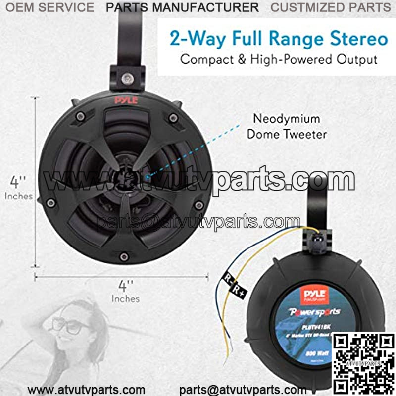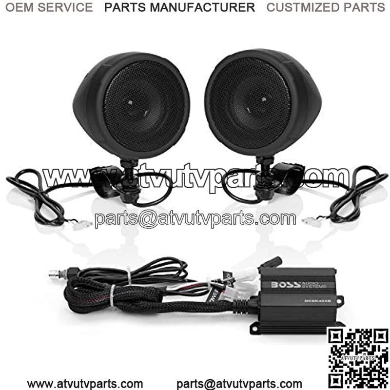 SPEAKERS: Also included are two 3-inch matte black full range speakers. The adjustable brackets will fit handlebars from ranging from .75 to 1.25