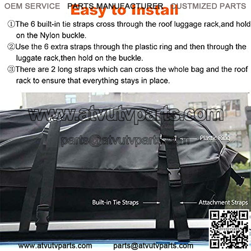 Waterproof Durable Material – The Car Roof Carrier is waterproof, offers the best weather protection. Made from rubber laminated nylon,with waterproof PVC material cover the both side zipper of the carrier.Withstands extreme temperatures, wind, sun, rain, snow, or sand.