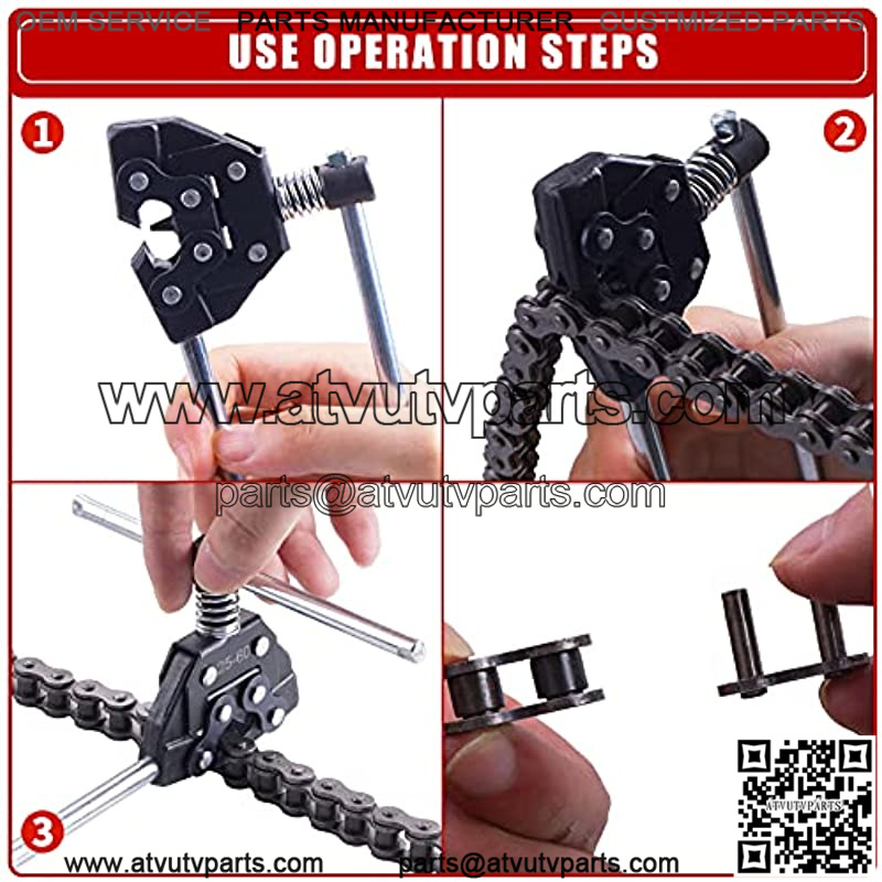 Material: High-carbon steel material, composite reinforcement, Extra niddle pin included, durable, spring-pressing and labor-saving design, cut chain into the length your need without any other tools.