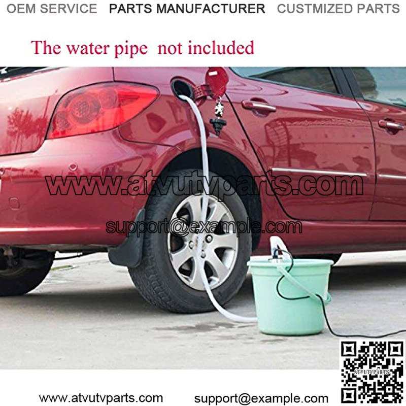 The pump adopts DC 12V motor, put 12v plug in a car battery or a cigarette lighter rather. The red click is to connect positive pole, the black click is to connect negative pole.