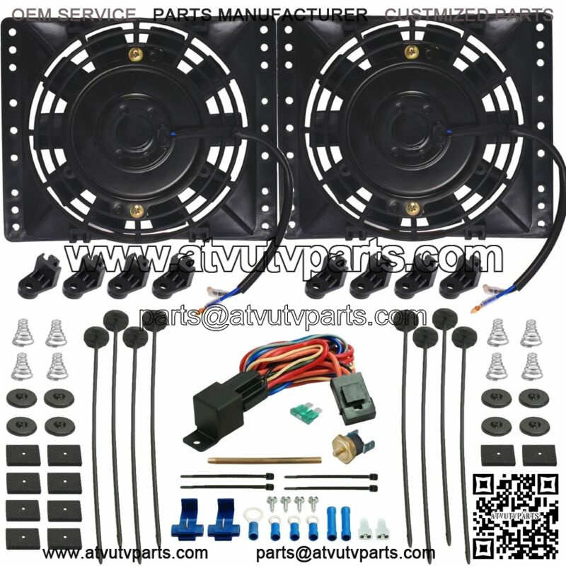 DUAL 6-7″ INCH ELECTRIC TRANSMISSION OIL COOLER FAN 180F PUSH-IN THERMOSTAT KIT