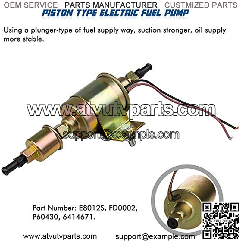 E8012S Electric Fuel Pump 12V Low Pressure Inline Transfer Fuel Pump 5-9 PSI for Carburetor Engine E8012S FD0002 P60430, EP12S