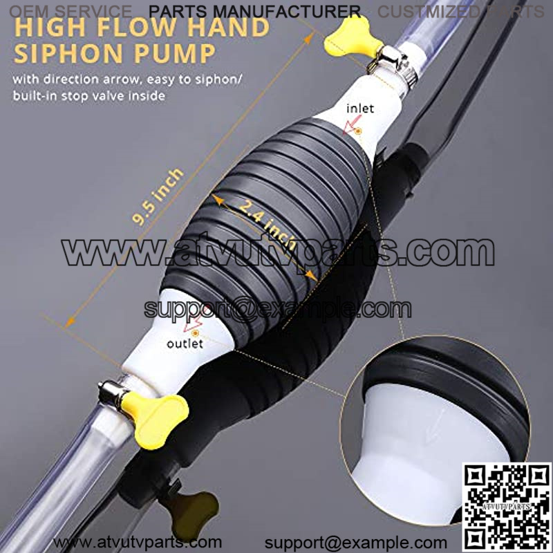 HIGH FLOW HAND SIPHON PUMP- Package includes 1*10ft/3 meters flexible and durable PVC transparent hose,1*high flow hand siphon pump,1*control valve,4 *hose clamps. Rubber hand pump, extended hose, that starts siphoning liquid flow quickly.