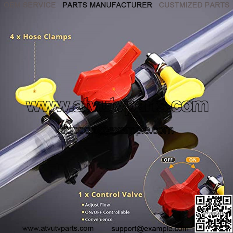CONTROLLABLE VALVE- The controllable valve is configured to prevent backflow and direct extraction, adjust flow, on/off controllable and convenience. The arrow indicates a flow direction. Safe and easy transfer of petrol and other fluids through siphoning into the exhaust system. Use 4 hose clamps to secure the pump, control valve and hose connection.
