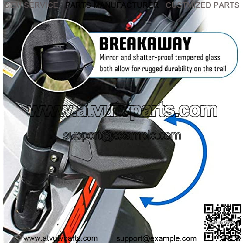 Engineering Rear View Side Mirror Kit for UTV (2 Pack) Fits 1.6″ – 2″ Round Roll Cage Bar Break Away and Adjustable – High Impact Shatter Proof Tempered Glass (Driver and Passenger Side)
