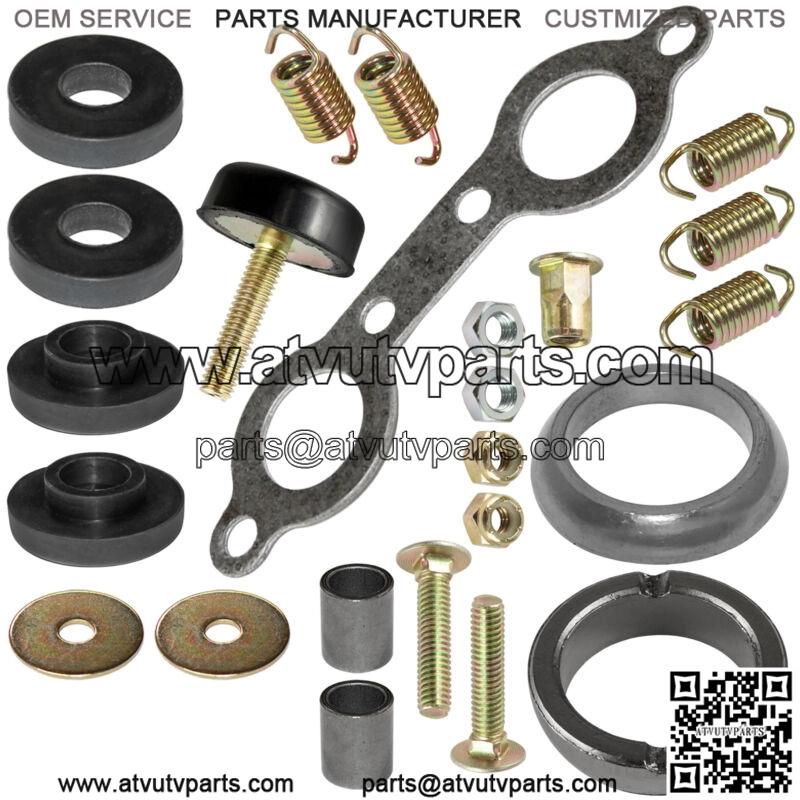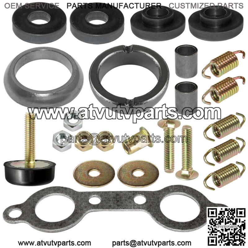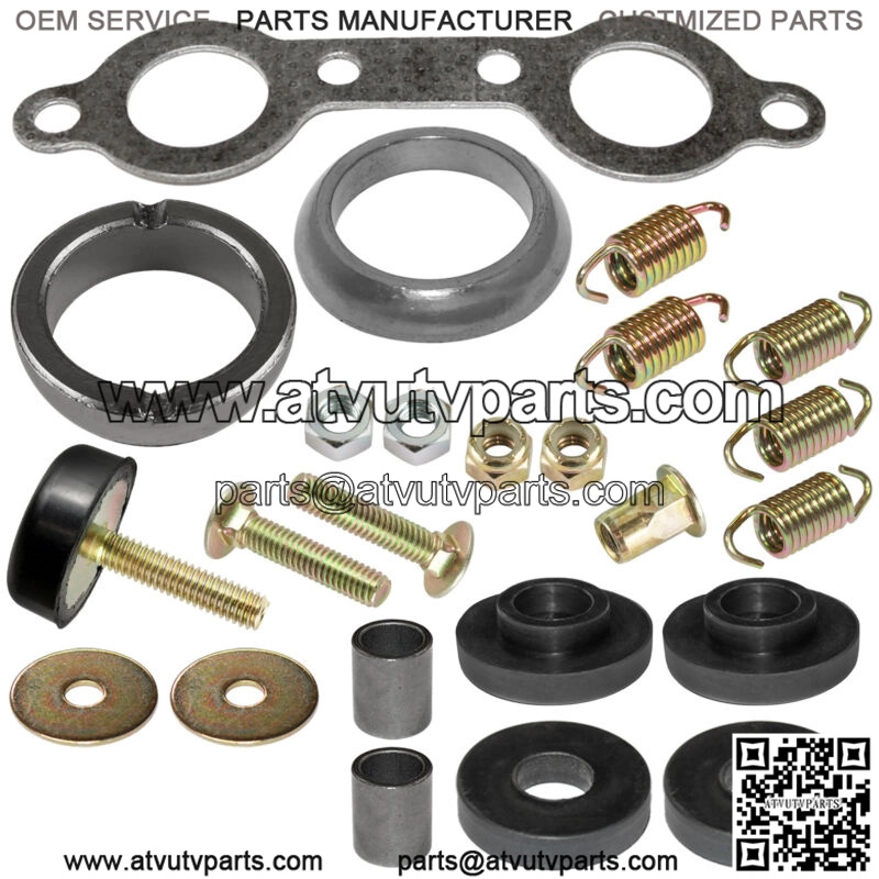 4 x Nut2 x Bolt4 x Washer1 x Nutsert5 x Muffler Spring1x Exhaust Gasket2 x Exhaus Bushing2 x Muffler Pipe Gasket2 x Dampener Vibration1x Torque Stop Mount