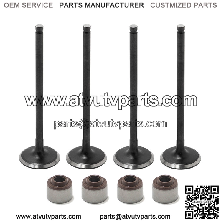 Package includes: 4pcs Exhaust Valves + 4pcs Valve Stem Seals