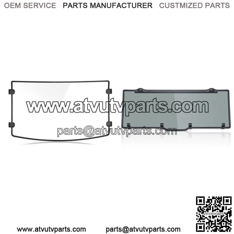 1. Strong and Durable1/4 in. thick utv windshield constructed of superior Polycarbonate material features durability, shock resistance, shatter resistance and corrosion resistance, standing up to extreme outdoor environment.2. Clear visionEnvironmental-friendly Polycarbonate construction ensures 93% light transmission and helps to soften radiation, ready to enjoy a clear vision while driving.3. Solid Windshield ClampSolid windshield clamp can be securely fastened to the windshield pre-drills; widened self-adhesive straps ensure simple installation & detachment; rubber pads on the windshield firmly connect the windshield clamp & car and prevent friction.4. Other Accessories FriendlyFrom a professional point of view to consider the accessories for UTV, Our windshield will not hinder the installation of other accessories, all edges are rounded and smooth. Rear Windshield Features:1.Incredibly Strong MaterialThe rear windshield is made of super strong polycarbonate, which is 250 times stronger than glass,stretching resistant, shock resistant, corrosion resistant, keeping rainwater, dust, mud away from your seat well;2.High light transmissionThe polycarbonate windshield light transmittance is more than 88%, ensure the vision of driving and improve the safety;3.Multi-FunctionThe rear windshield can block flying dust and debris,rubber strips are wrapped around the windshield to seal and cushion the windshield. In addition, the rear windshield can be used with soft top or hard top, which may require temporary removal of roof components during installation;4.Easy to installEasy to install without tools, place the windshield at the right position and rotate the clamp to complete the installation. Compatible with :