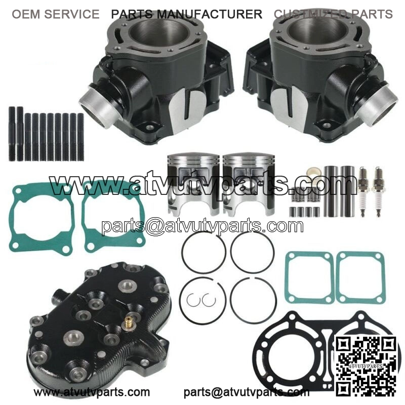 Left Cylinder, Right Cylinder, Cylinder Head Pistons (2), Piston Rings (2), Wristpins (2) Circlips (4), Needle Bearings (2), Head Gasket, Base Gaskets (2) Valve Seat Gaskets (2), Spark Plugs (2)