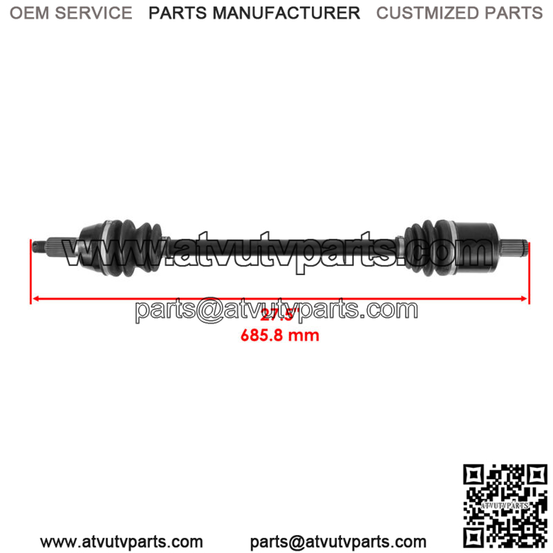 Front Left and Right Axle Spec:Spline A: 26 ToothSpline B: 22 ToothOverall Length: 27 in – 685.8 mm