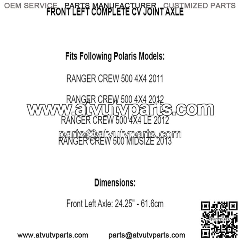 Front Left Complete CV Joint Axle for Polaris Ranger Crew 500 4X4 2011-2013