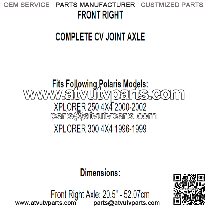 Front Right CV Joint Axle for Polaris Xplorer 250 2000-2002 / 300 4X4 1996-1999