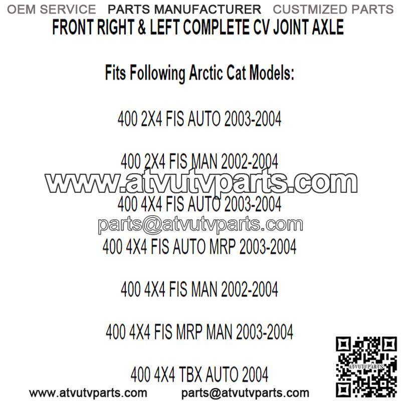 Fits Following Arctic Cat Models: