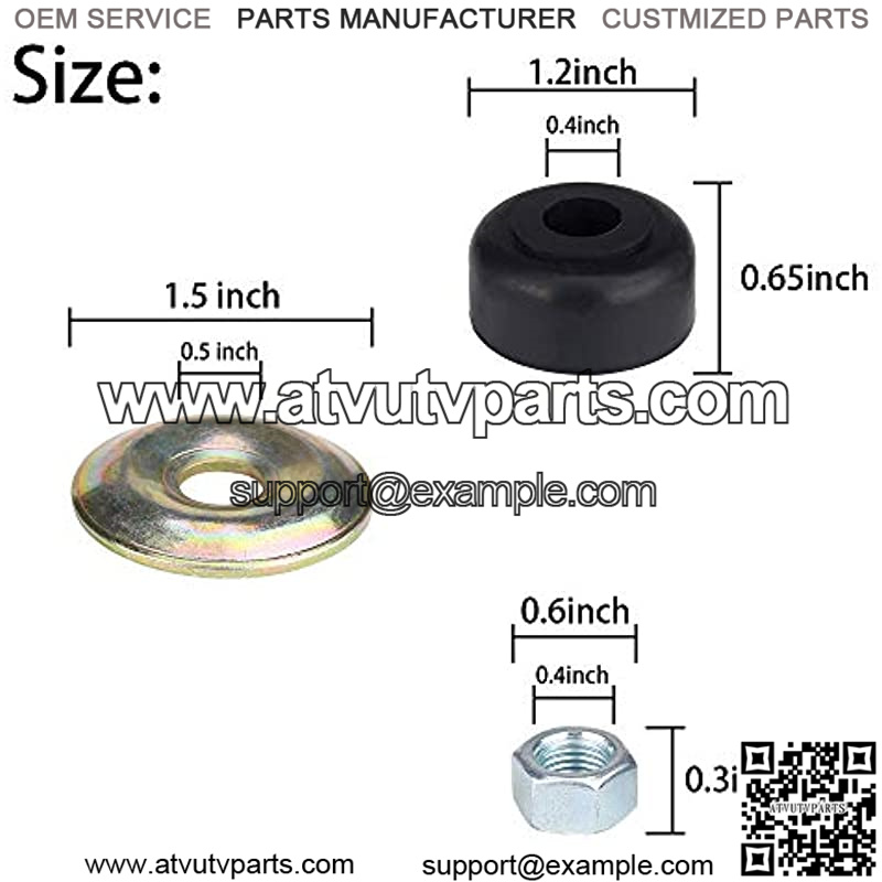 Item Included4 rubber bushings, 4 retainer washers, 4 Hex pal nut.