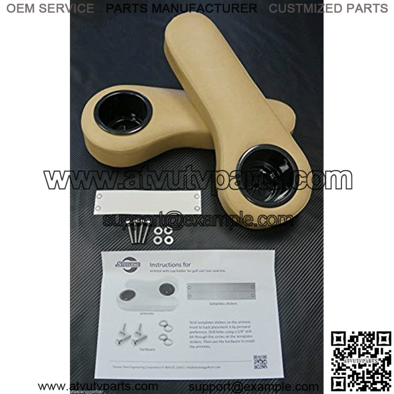 Golf Cart Rear Seat Arm Rest Cushion / Cup Holder (Tan) Steeleng Golf Cart Made This arm rest cup holder can fit all sizes and different brands of rear flip seat. (With 1″ wide sq tube) Fits: EZGO/Club Car/Yamaha Rear Flip Seats/Rear Seat Upholstered with marine grade vinyl for long lasting! Template with installation is included! Stainless steel hardware is included! Armrest thickness: 2 1/2″