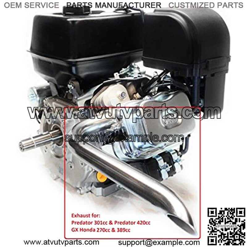EXHAUST DOES NOT WORK ON DUROMAX ENGINE 16HP OR 18 HP DO NOT ORDER IT IF YOU HAVE ONE OF THESE ENGINES! Note:This header does not have any kind of paint. Type of material: Mild steel, Uncoated Steel. ***Please read before you make your purchase*** If you are buying this for a mini bike please be sure to take measure to ensure that you will not burn your leg… please look all The picture for details. >> 2 ss bolts included and 2 washers. -Gasket not included. -Engine not included. This is custom made Header, weighs about 24oz. Center hollow to hollow 2″ (please look all The picture for details) Remember this is not a Muffler, is loud! This been tested on 8HP (301cc) OHV predator, and Predator 13 HP (420cc) engine from harbor freight. -Works also: GX hondas 270 & 389, Briggs 1450 305cc, Lifan LF190F-BQ 15 HP 420cc Made in U.S.A.