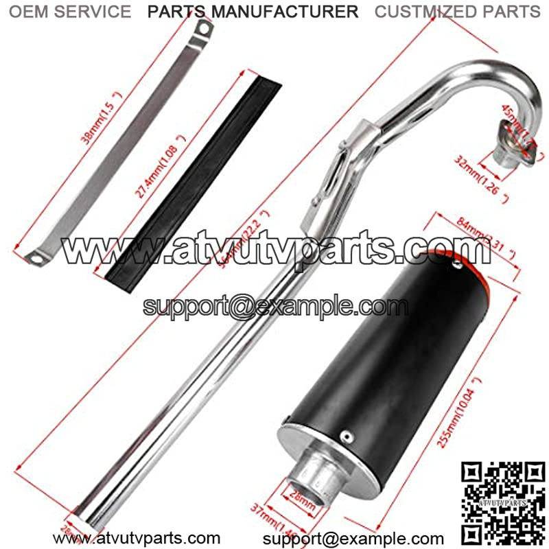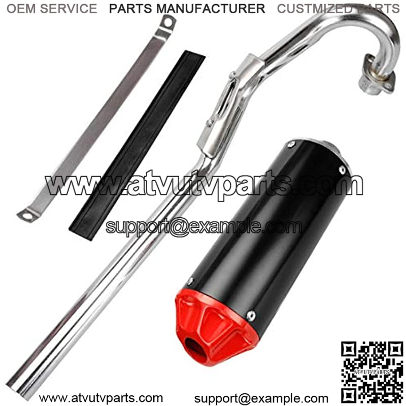 Package Contents: 1 x Exhaust Muffler 1 x Exhaust head pipe 1 x metal clip 1 x Black rubber gasket 2 x gasket 1 x Screw kit