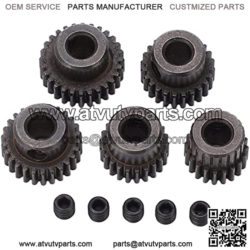 Item Type: 48DP Motor Gear Material: Steel Colour: Black Weight: Approx.33g/1.2oz Gear Height: Approx. 8mm/0.3in Aperture: Approx. 5mm/0.2in Including T Number: 20T, 22T, 24T, 26T, 28T (one for Each) Application: for 1/10 RC Truck, Climbing Car
