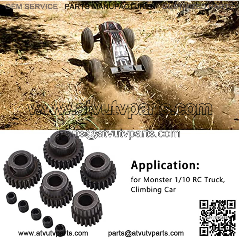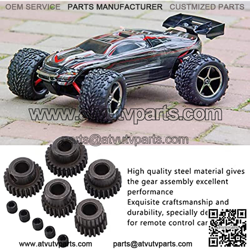 STRONG AND DURABLE:High quality steel material gives the gear assembly excellent performance.PERFECT ACCESSORIES:Not easy to deform or damage, perfect match as a replacement for the original.5 GEAR SIZES:Diameter: 11mm/0.4in (20T), 12mm/0.5in (22T), 13mm/0.5in (24T), 14mm/0.6in (26T), 15mm/0.6in (28T).MOTOR GEAR:Exquisite craftsmanship, specially designed for remote control car, can meet the needs of remote control car enthusiasts.