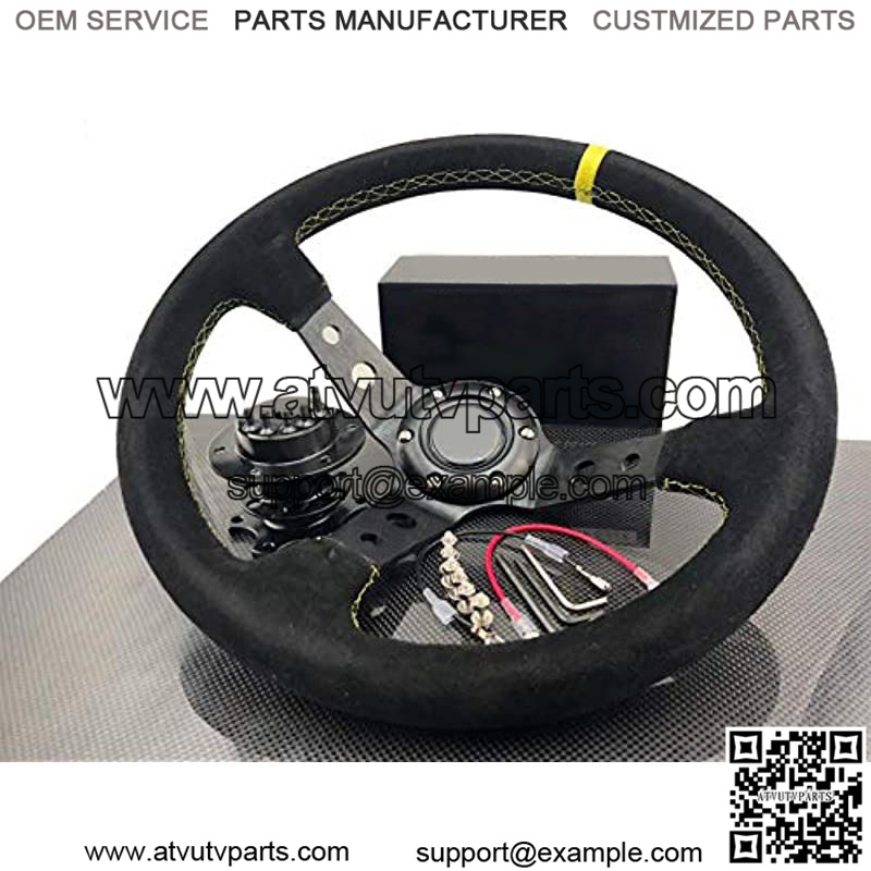 350mm / 13.8″ Deep Dished Universal Racing Suede Alloy Steering Wheel & Quick Release Hub Kit