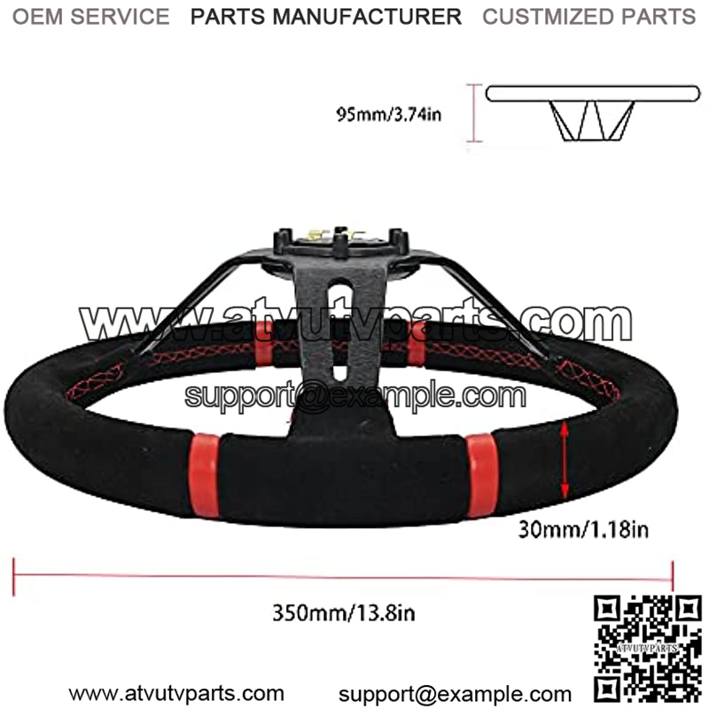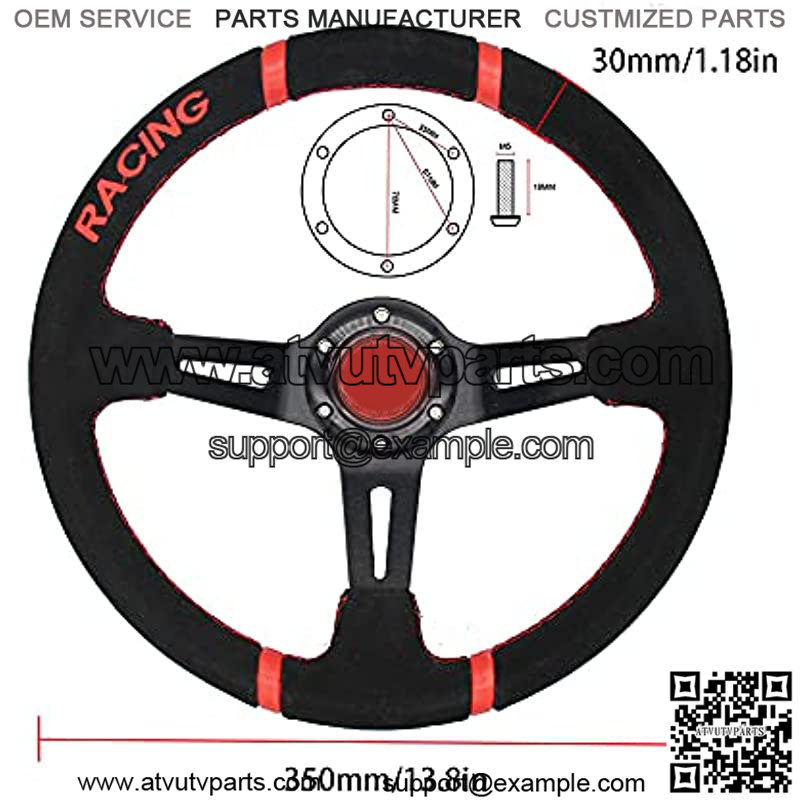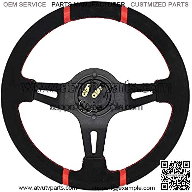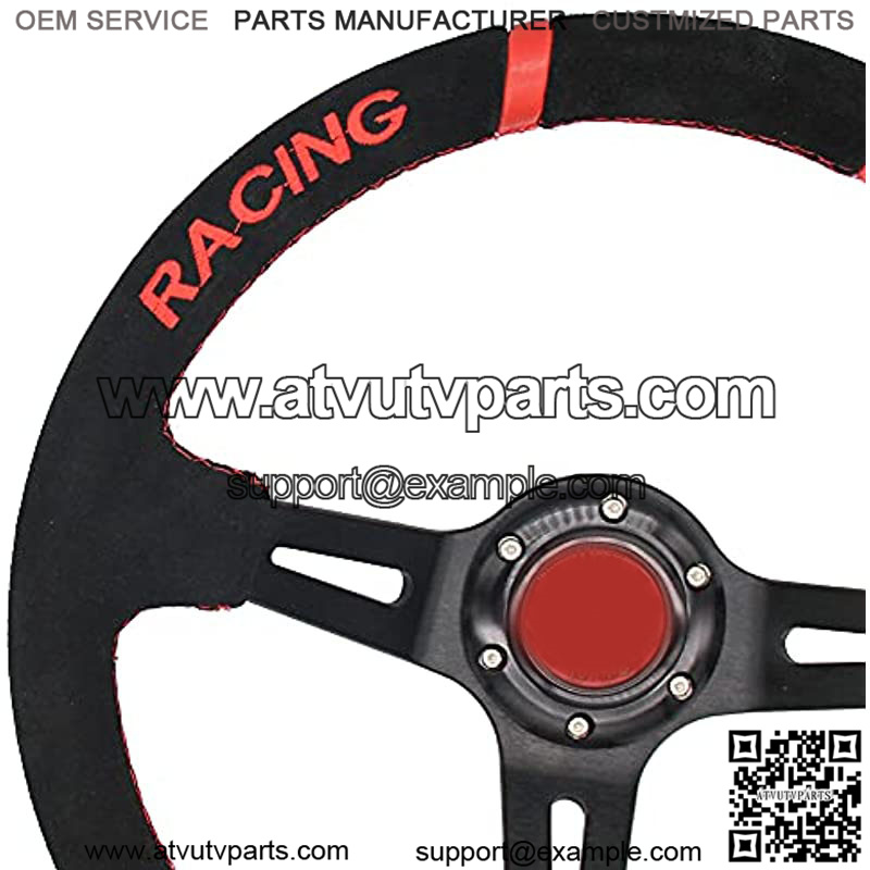 350mm 3 Inches Deep Dish 6 Hole Racing Steering Wheel Velvety Skin Grip Suede Wrapped Leather Red Pointer With Horn Button For Car Boat Truck Yacht