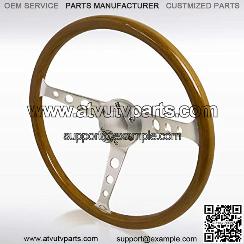 Made by high quality light weight polished wood/plastic composite steering wheel with aluminum spokes.