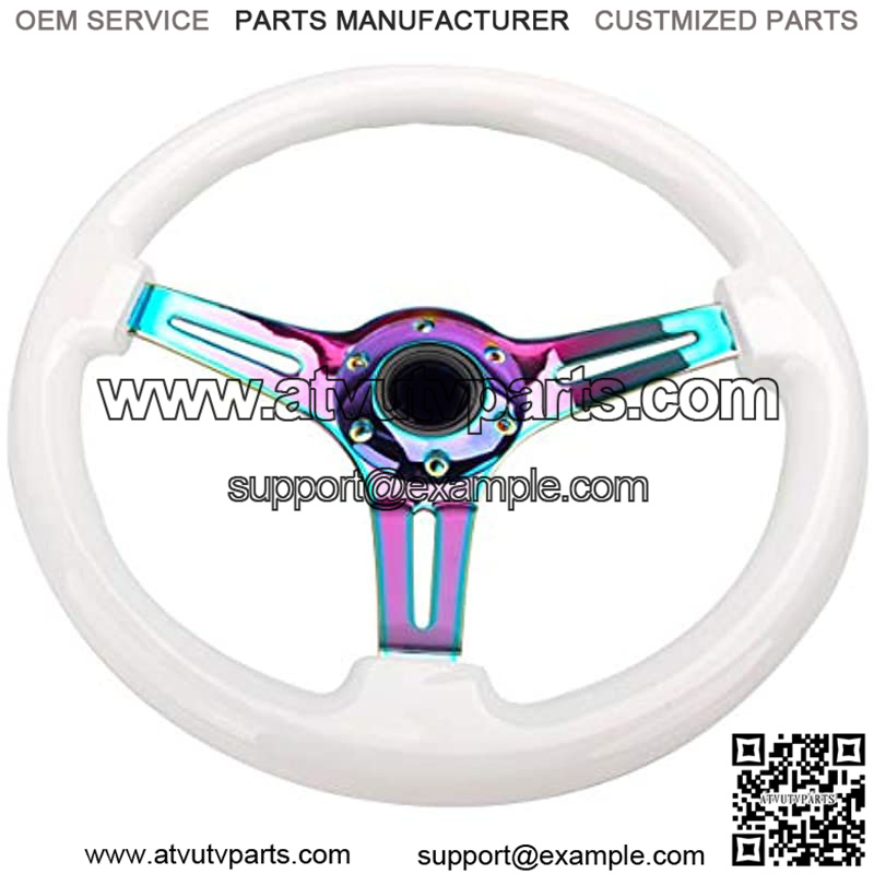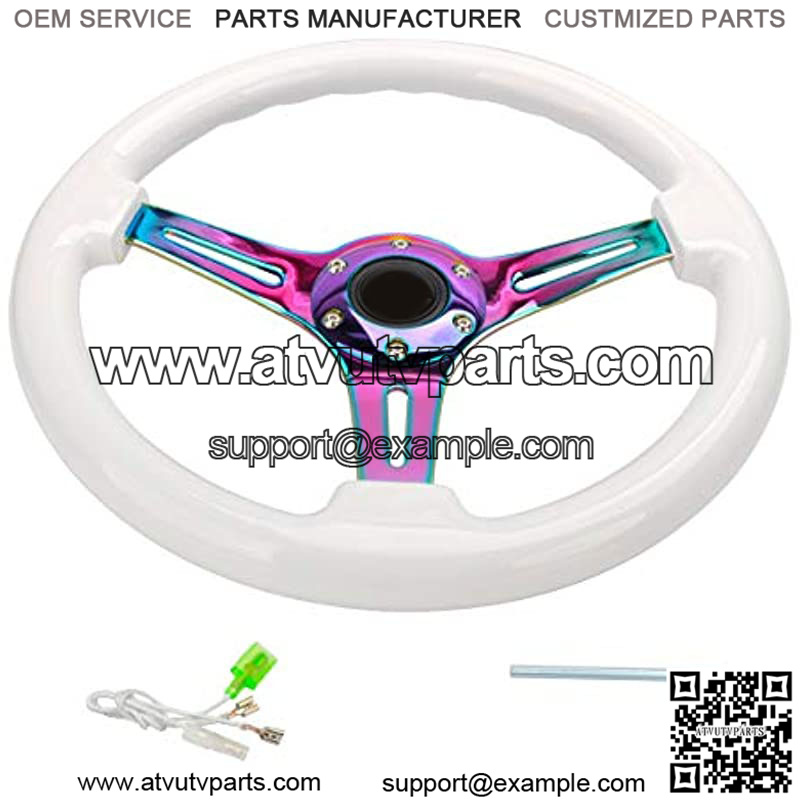 14″(350mm) Wood Grain Steering Wheel 6 Bolts 1.5″ Depth Dish Gold Chrome Spoke Fit for Acura White Color