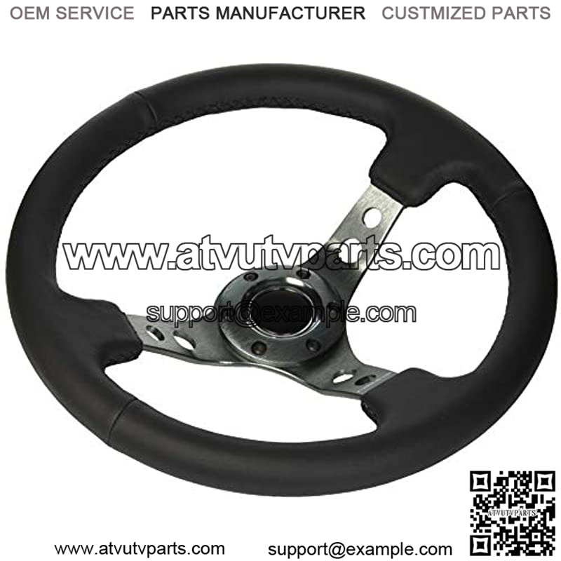 RST-006GM forced Steering Wheel (350mm Sport Steering Wheel (3″ Deep) – Gun Metal Spokewith Round holes/Black Leather)