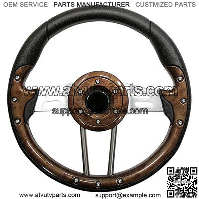Golf Cart Steering Wheel Woodgrain Grip Aluminum Spokes 13 Inch