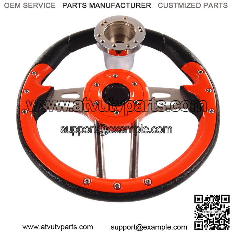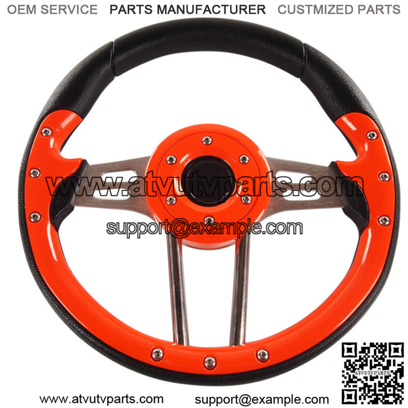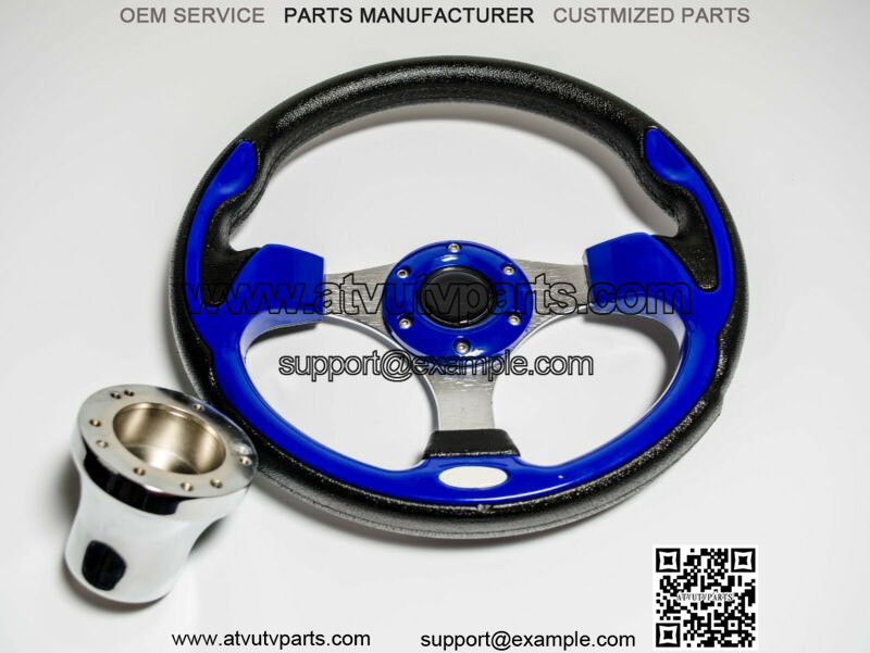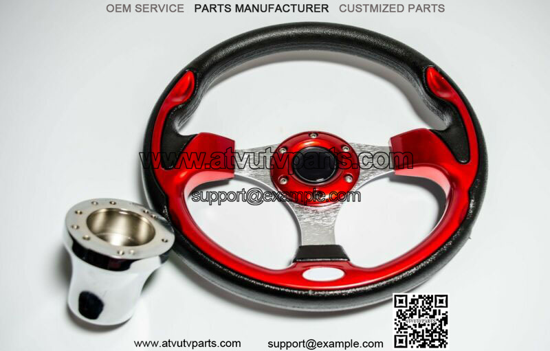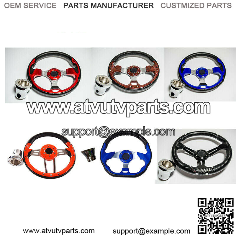 GolfCart Steering Wheel W/ Chrome Adapters (please choose the right model for your golf cart).Features:Brand new golf cart steering wheelCustomize and add style to your cart.Adding a custom Steering Wheel gives you better control of your cartInnovative StylingDurable UV Coated PU or PVC materialHorn button is for aesthetic purpose only.12.5inch or 13 Inch DiameterEasy installation, Instructions are included.Please check you cart model before you place the order.