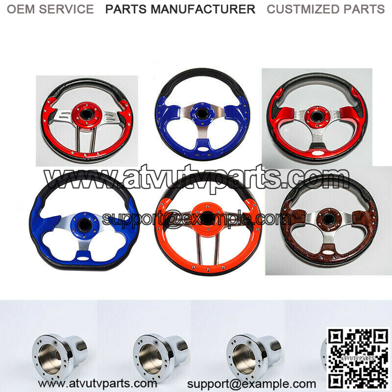 EZGO/ Club Car/ Yamaha Golf Cart Steering Wheel Hub Adapters (Sold Separately)please check your cart model before you purchase it.EZGO/ Club Car/ Yamaha Golf Cart Steering WheelRed / Pink / Purple / Carbon Fiber/ Lime Green/ Wood GrainFeatures:Brand new golf cart steering wheelCustomize and add style to your cart.Adding a custom Steering Wheel gives you better control of your cartInnovative StylingDurable UV Coated PU or PVC materialHorn button is for aesthetic purpose only.12.5inch DiameterEasy installation, Instructions are included.