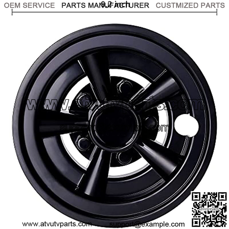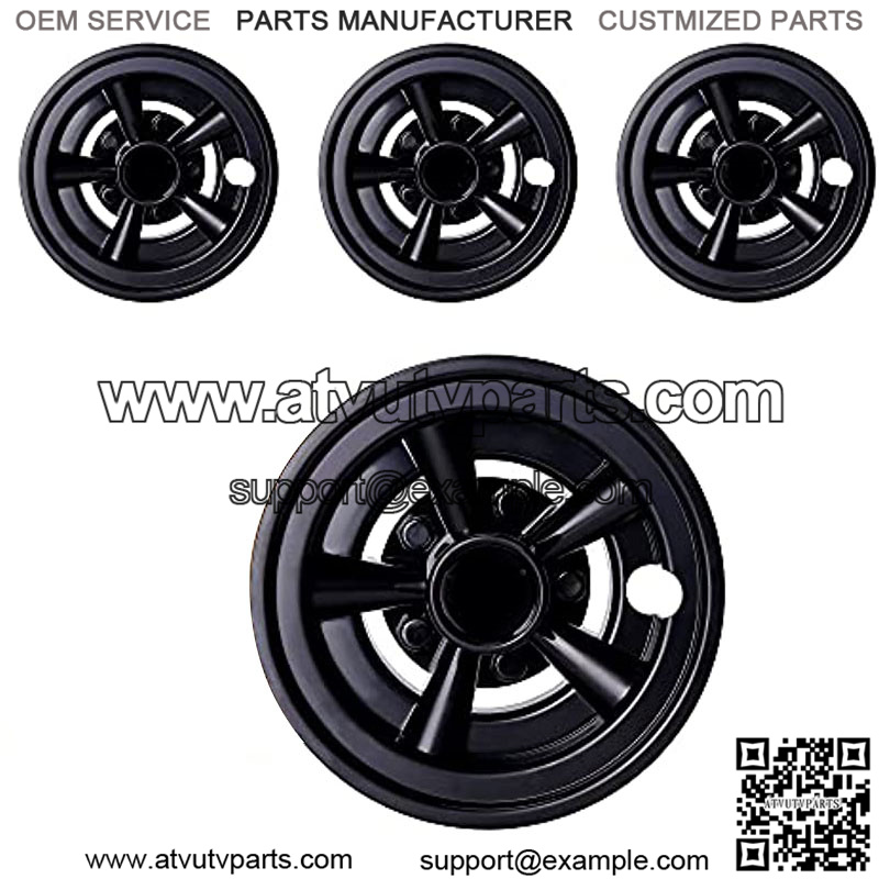 4 pack hub caps are coated with protective layer, more black and brighter. 5-spoke style design, good for improving the look of your golf cart