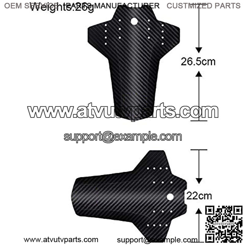 Carbon fiber texture: This mudguard is of high-quality engineering plastics with a 3D carbon fiber pattern. The non-toxic PP engineering plastic material is very light, durable and not easily deformed, and can be folded many times.