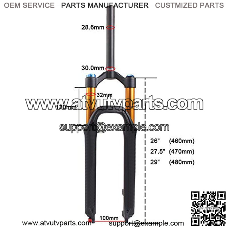 Fork TypesRebound Adjust MTB Suspension Air Fork Optional size: Black( 26/ 27.5/29)Black gold (26/27.5) 28.6mm straight tube ,Weight 1675g (50g),approx